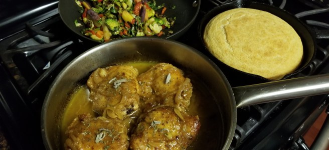 It’s a lovely chicken dish with a cognac butter sauce. To say it was delicious is a bit of an understatement. I especially loved how the garni added a fragrant and flavorful bouquet to the sauce, but an added plus: it left a lingering, mouthwatering smell in the house.