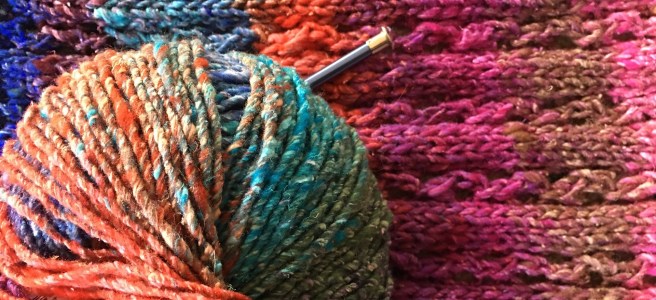 This time I’m using larger needles and a bulkier yarn. It’s more difficult to cast on and I find myself concentrating harder on each stitch. The needles feel awkward and the yarn heavy. The entire process feels different even though I’m working on the same pattern. I struggle to find a rhythm.