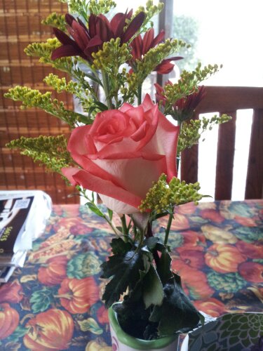 I haven’t had a man give me flowers since I was in France trying to break the bonds of confused American modesty to embrace French freedom. A topless me deserved a bouquet. I’m not sure why I deserve this beautiful flower tonight.